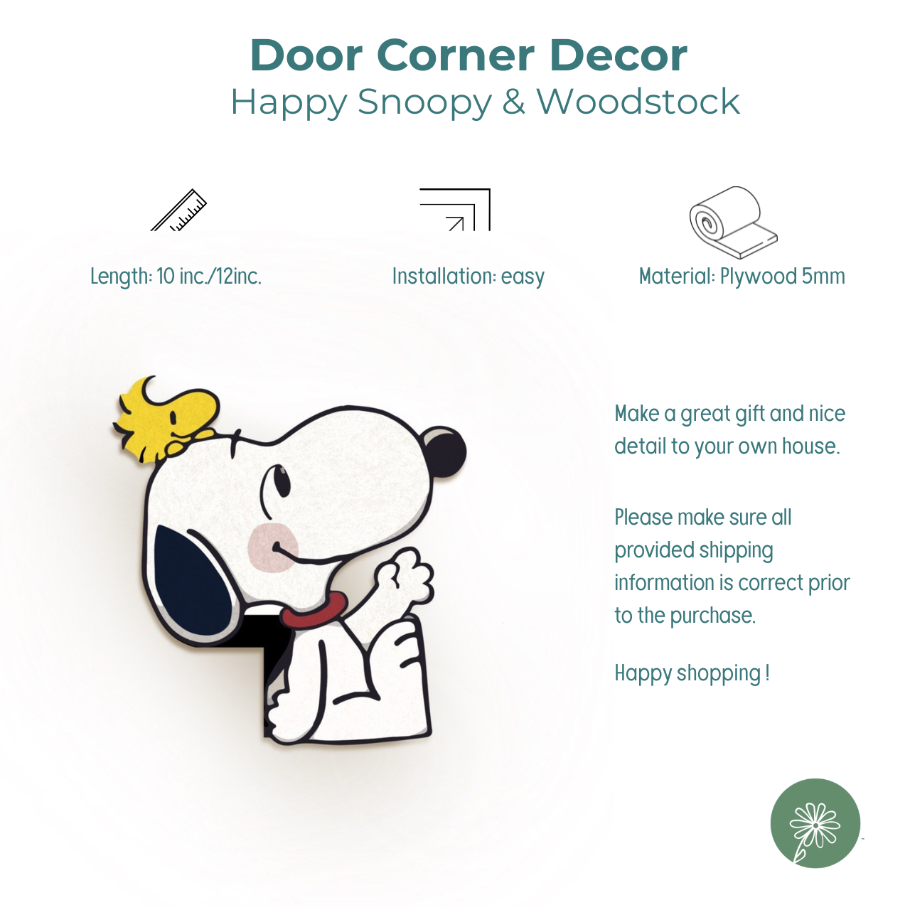 Design: Captures Snoopy and Woodstock happy together, making it a perfect accent for a door corner decor.
