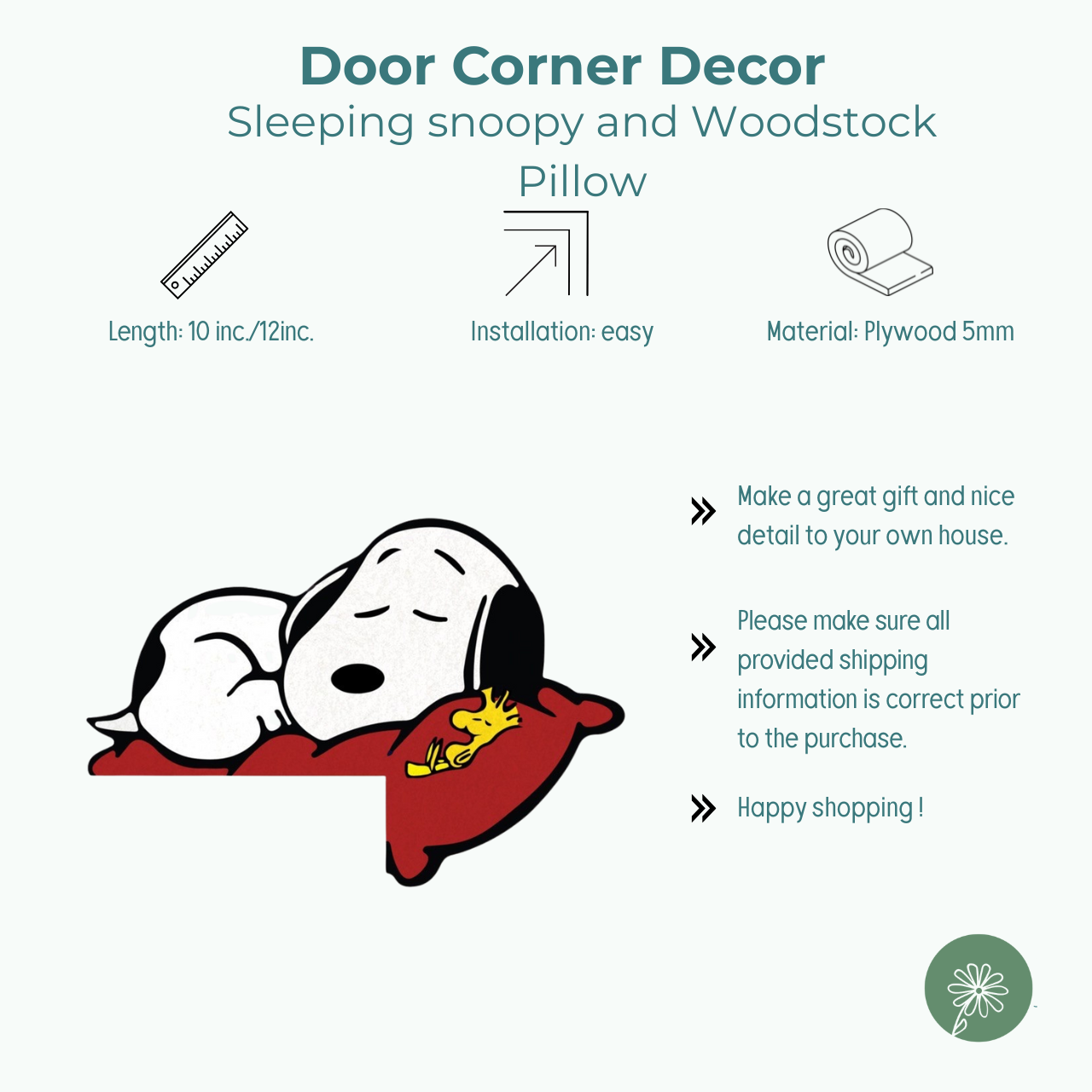 Design: Captures Snoopy and Woodstock sleeping on a comfortable pillow, making it a perfect accent for a door corner decor.